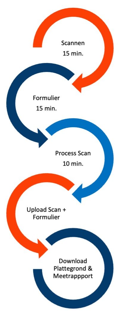 Wij gaan aan de slag met de aangeleverde bestanden. Bij oplevering sturen wij een link waar je de plattegronden en het meetrapport kan downloaden.